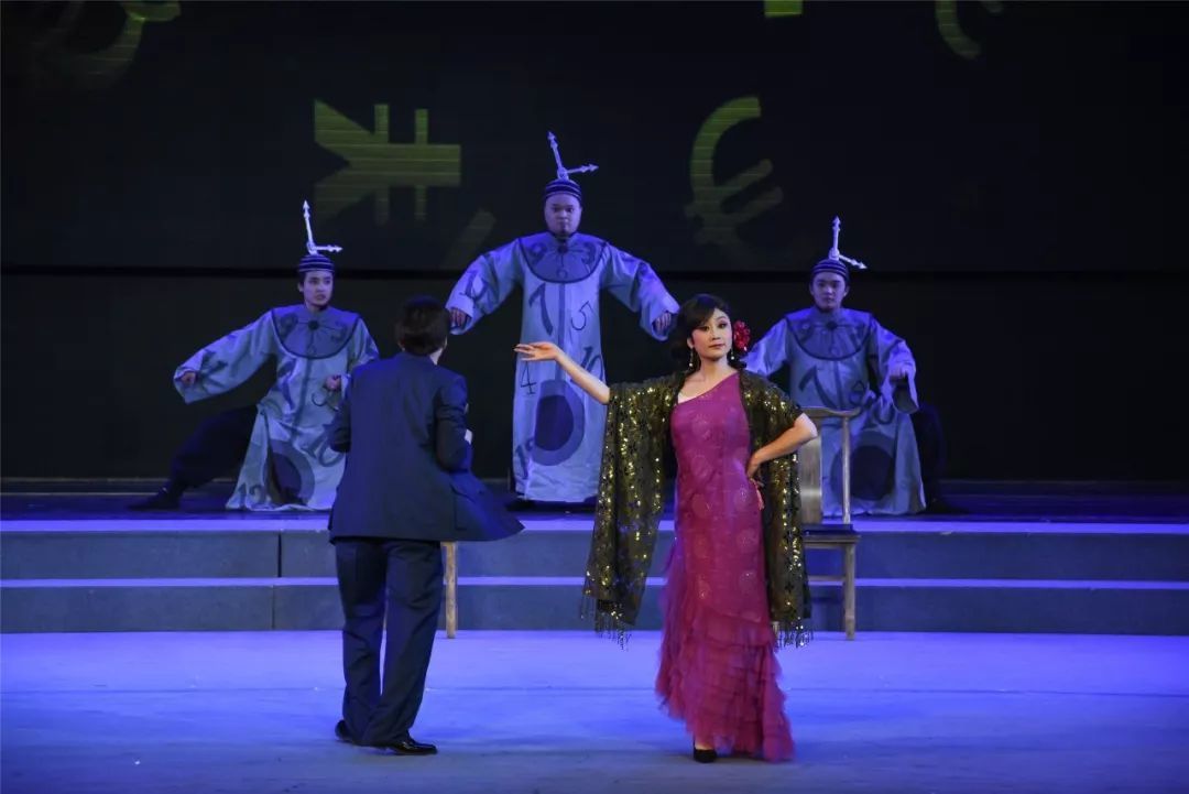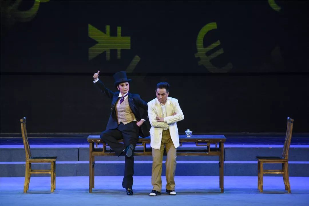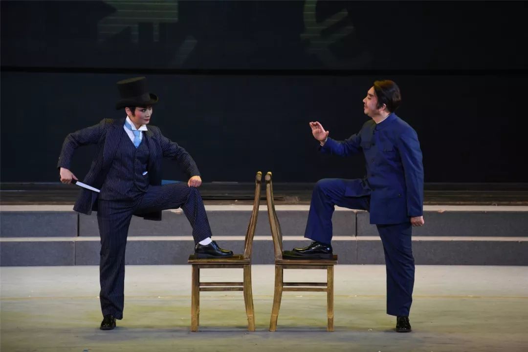 舞台上,“拟人化”表现手法是该剧一大亮点,剧中的钱币、扑克等元素均用人来饰演,既可以更生动地表现情节,又给观众以风趣幽默的感觉。而且,相较原版结尾情节的分散,新版明显紧凑、集中,给观众耳目一新的感觉。另外,原版男主角杨荪是个彻头彻尾的坏人,但是新版男主杨荪良知尚存,人物性格更复杂,角色更鲜活更立体。