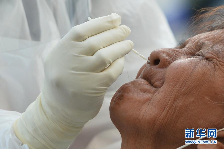 12月22日,泰国沙没沙空府居民接受新冠病毒检测取样。