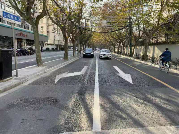 这个堵点是个系统工程,如果仅靠交警部门或者街道唱“独角戏”,收效甚微。于是枫林街道、徐汇区建管委、交通中心、徐汇公安分局携手多次对零陵路东安路实地踏勘及对地下管线排摸,协同发力,商议在零陵路东安路西进口渠化一根车道的可行性。在各方协调下,道路优化工程在12月初完成改造施工,改造后将零陵路南侧人行道压缩,重新规划一条长约100米的非机动车道,并将零陵路一机一非车道在进路口西约100米处调整为一根直行车道和一根右转车道,进一步提升零陵路通行能力。同时保留了原先道路一侧的行道树,将其作为隔离机动车与非机动车的天然屏障,减少冲突点,控压机非事故的隐患。以往零陵路一侧的医院进出口需要安排多个保安力量维持秩序,救护车几乎不可能从这里进出。现在道路通畅了,也给进出医院的救护车多了一种行车路线的选择。