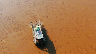 11月30日凌晨2时许,临港东滩某片水域,突然响起发动机的轰鸣声,漆黑的水面上闪过几束晃眼的灯光,潘某等人又出动了。他们驾驶快艇和自制泡沫船,目的地是长江上海段临港东滩促淤区。