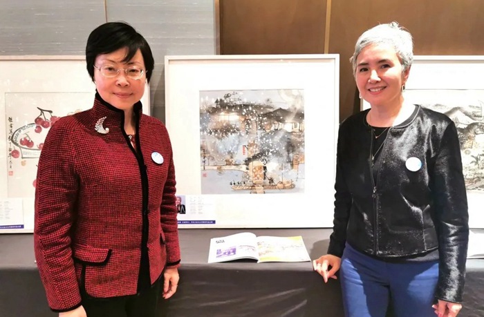 如今,越来越多行业的中外太太陆续加入,她们把对中国文化的喜爱和独特见解演绎成宣纸上的笔墨与色彩。活动现场,来自中国、法国、美国、日本等国的她们向爱心人士和机构讲解自己的创作灵感与构思。