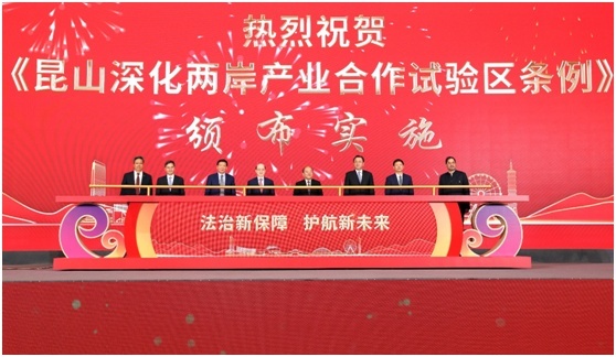 同时,《昆山深化两岸产业合作试验区条例》对外发布,将于2021年1月1日正式施行。《条例》的出台,将为在昆山工作生活的广大台胞台企提供更完善的权益保障、创造更广阔的发展空间,也将为昆山试验区在更大范围、更宽领域、更深层次改革开放奠定更加坚实的制度基础,提供更有力的法治支撑。