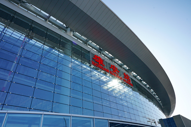 京雄城际铁路雄安站进站口(12月24日摄)。记者26日从中国国家铁路集团有限公司获悉,北京至雄安新区城际铁路(京雄城际)大兴机场至雄安新区段将于12月27日开通运营,京雄城际铁路实现全线贯通,雄安站同步投入使用。北京西站至雄安新区间最快旅行时间50分钟,大兴机场至雄安新区间最快19分钟可达。新华社记者 牟宇 摄