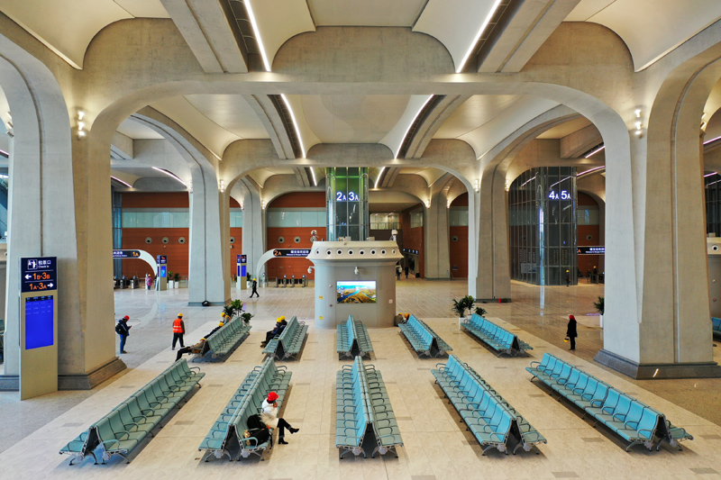 12月26日拍摄的京雄城际铁路雄安站候车大厅。新华社记者 金皓原 摄