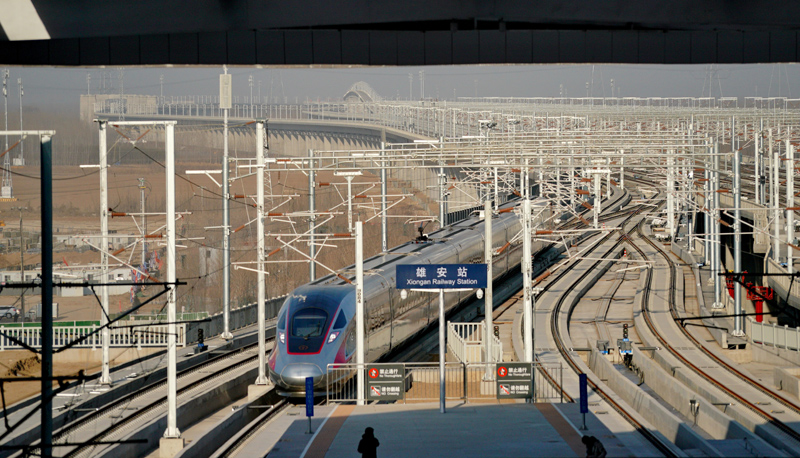 12月24日,用于测试的动车组列车驶离京雄城际铁路雄安站。新华社记者 牟宇 摄