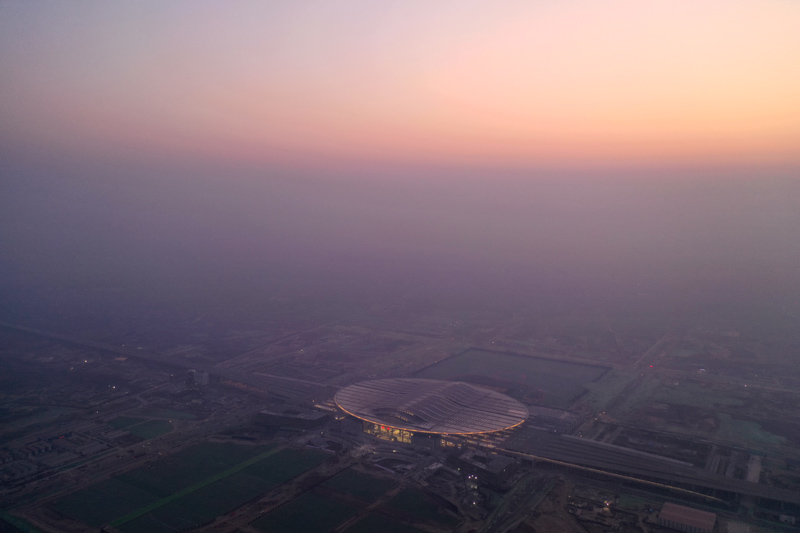 12月26日拍摄的京雄城际铁路雄安站(无人机照片)。新华社记者 邢广利 摄