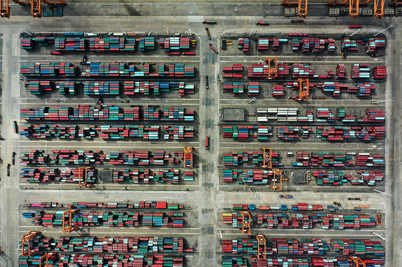 这是钦州港码头存放的集装箱(11月19日摄,无人机照片)。新华社记者 张爱林 摄