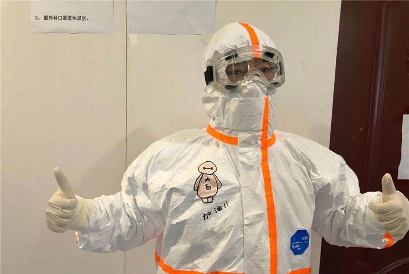 △武汉儿童医院的医护人员们在防护服上画上卡通画,告诉小朋友们,不要怕。