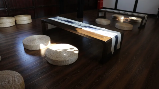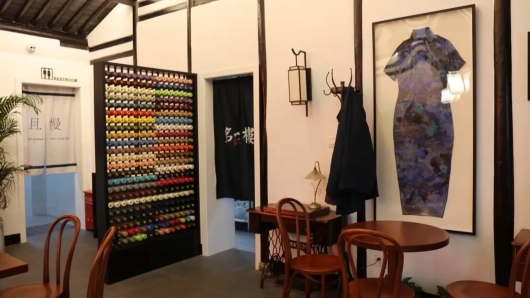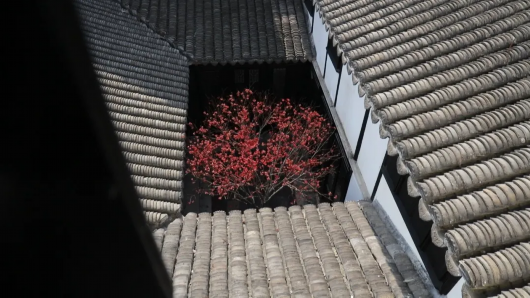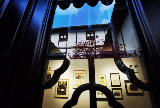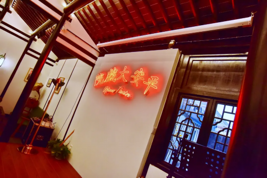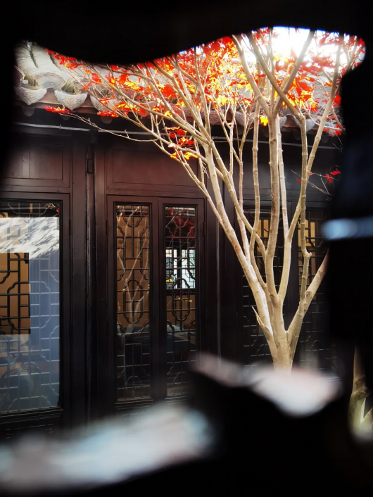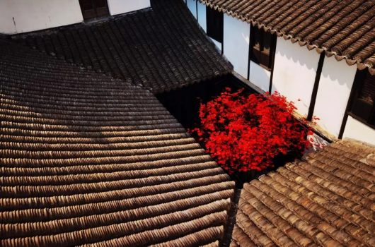 第一楼原始地砖局部保留,留存并展示着古镇独特的建筑风情。踏着艺术地砖抬头一望,便是天井,一树红枫与宅子遥相呼应,共同诉说着时代的故事。