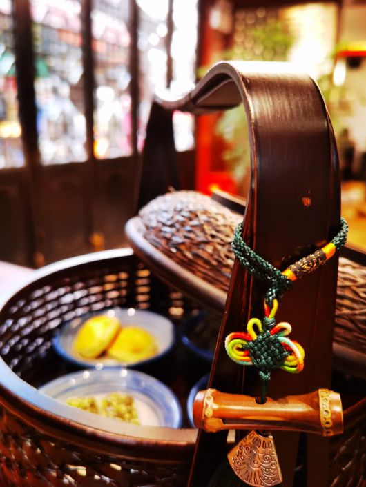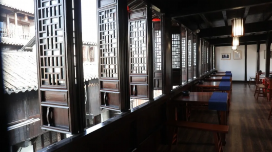 新年元旦,古镇游人如织,新场地标洪福桥畔的“第一楼书场”二楼三楼的木制格子窗再次打开。一楼门厅客堂,身着莫兰迪色系民国服饰的迎宾员将为你开启“民国之旅”。