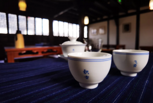 王 峰继续告诉小布:“第一楼本身承载了新场文化创新的一个任务,因此在茶具上我们设计为两种。一是针对一层书场大壶茶的提梁壶;而针对一些更讲究的茶客,则 开发了“熬波煮海”的盖碗系列,包括餐巾纸,同样是双蓝线,像是民国的手绢,一经一纬相交错,又像极了新场“井”字型河道与古镇建筑格局。”