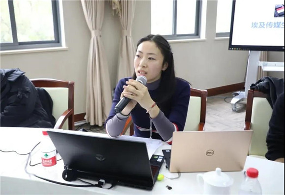 东方语学院鞠舒文老师分享了自己在埃及传媒生态方面的观察与研究成果,对中阿之间的传播提出了实际建议,展示了中心依托上外多语种优势进行跨学科研究的部分成果。