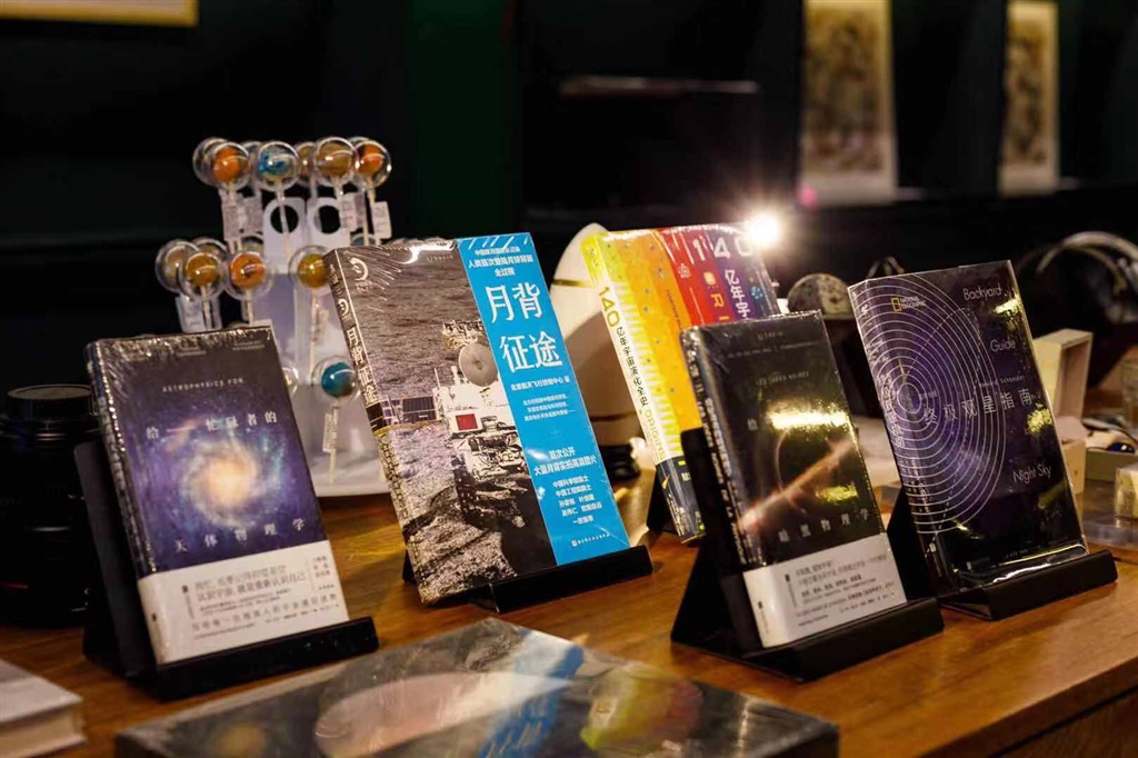 此外,展览现场精选了“未读·探索家”系列丛书、《望向星空深处》、《NASA终极观星图鉴》、《古希腊文明的光芒》等30多本与“星空”、“宇宙”相关的图书,与展览一起带读者深入领略宇宙的光芒。同时,展览精选了多种文创,如星图装饰画、小王子天空音乐盒、用饰物演绎宇宙的建筑美学首饰品牌一日帆iRiffle、发射台黑洞石扩香、星球巧克力等,全面调动五感,让读者感受无垠星空。