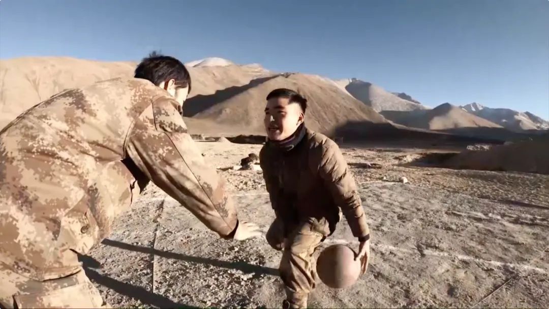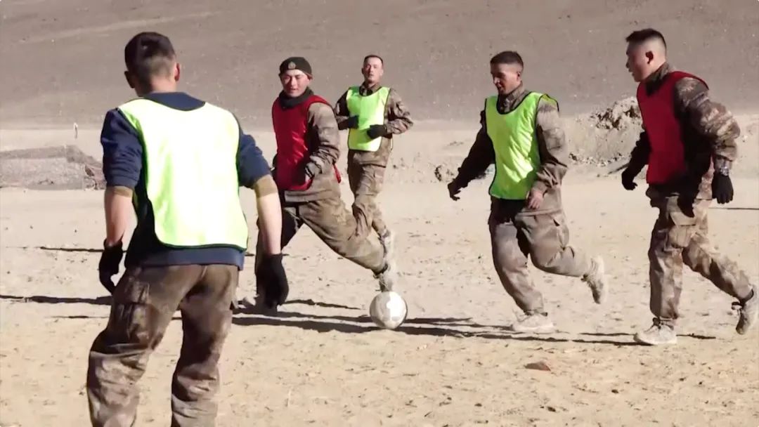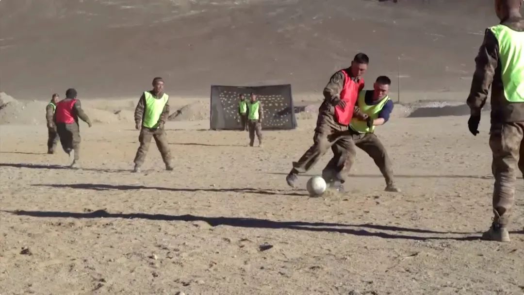 在高海拔的战地环境中踢球虽然累,但战士们还是感觉一个字:爽!