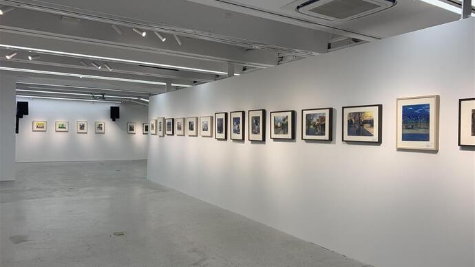 走过刚开通的徐家汇“空中走廊”天桥,可以欣赏一场独特的油画展。1月22日,由上海美协等主办的“国韵绚彩——走过天桥·上海23画家纸上油画展”在美罗城艺space开展。