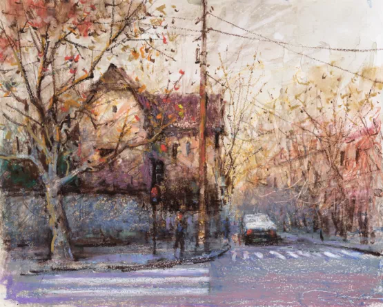 由于油画棒使用便捷且易携带,本次纸上油画展展出作品大都是生活中直接写生的作品,也因此,画面内容较其他油画展显得更接地气。包括《晨》《流水》《弄堂》《看手机》等作品在内,经由画家们的笔,快节奏的上海生活凝固成瞬间的美好,观众也由此于喧闹的都市生活中收获一份艺术带来的宁静瞬间。