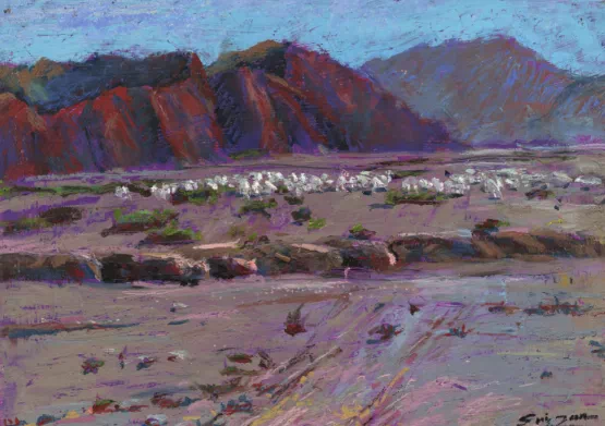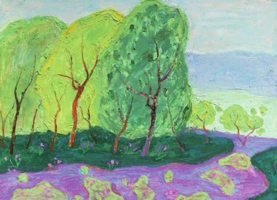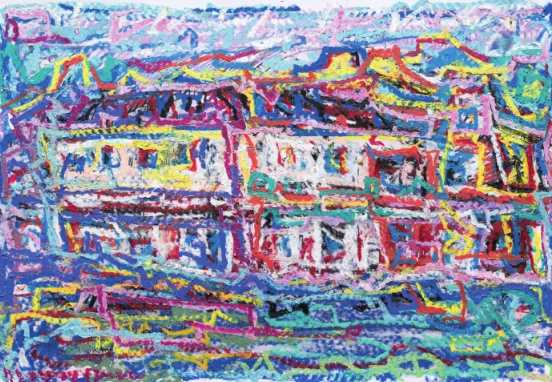 油画棒便于携带,呈现的画面效果类似油画,油画棒作品也俗称为“可画在纸上的油画”。画家张安朴介绍,本次展览展出的作品均采用可溶于水的新型油画棒,“油与水的相互交融,也使得画面呈现更加厚实丰富”。