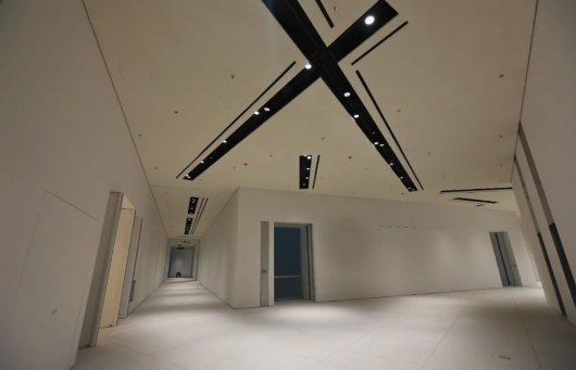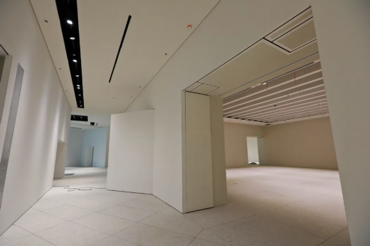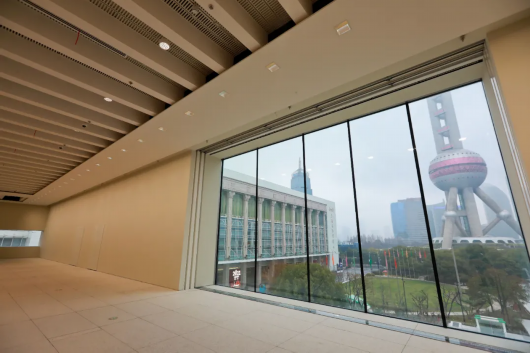 常规的“白盒子”展厅也极具特色。位于顶层的展厅可引入上部自然光,并配备三层窗帘系统改变透光度,配合不同的展览与表演内容,带来不同的光影效果。5米高的标准展厅可展示架上油画,顶部拥有安置导轨的灯光系统,可根据展示内容随时调整光照。照明灯无频闪,对作品损害小,当然也是“大价钱”。不算现已固定安装在馆内的,浦东美术馆仓库里还有2000盏这样的灯。