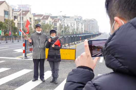 前来参加通车仪式的丁新芳高兴地说,为了这条道路,我们灶路村的村民都是挺配合的。“大家盼了好几年,现在终于通车了,真的很高兴。我刚才还拍了照,等下发到朋友圈去。”