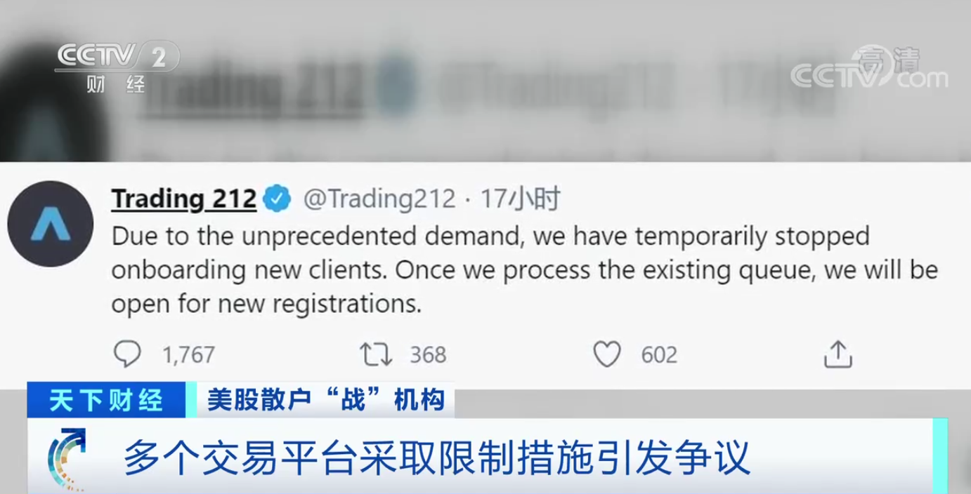 从美国兴起的散户逼空风潮在隔夜交易中还蔓延到了欧洲,在不少交易平台上,这些近日被拉抬的个股查询量和交易量也出现激增,英国交易平台Trading212发布通告称,由于需求量意外大增而暂停处理新客户。