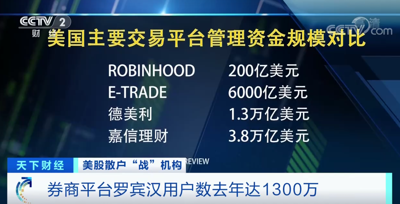 处于焦点中的罗宾汉是一家成立于2013年,总部位于美国加州硅谷一代的创业公司,因为不向用户收取交易费用,因此吸引了很多年轻的散户投资者。去年,这一平台的用户量已经增长到1300万,但从资产管理量来看,平均户头规模只有1000到5000美元,可以说是美国最重要的散户聚集地之一。