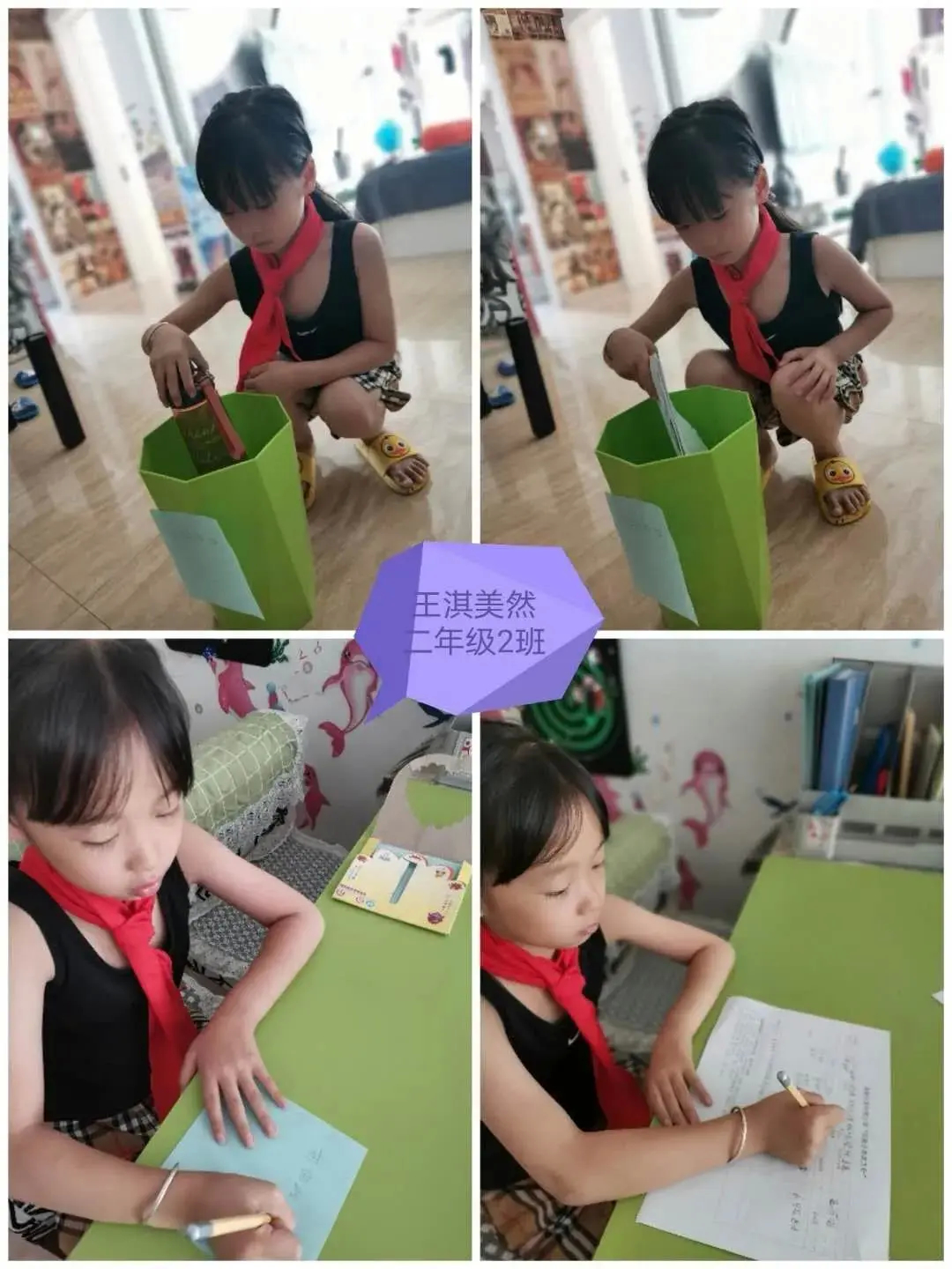 高新区星河湾小学的少先队员们的实践活动同样丰富多彩。他们参与了填写垃圾分类记录单、制作垃圾分类手工作品等丰富多样的暑假实践活动。