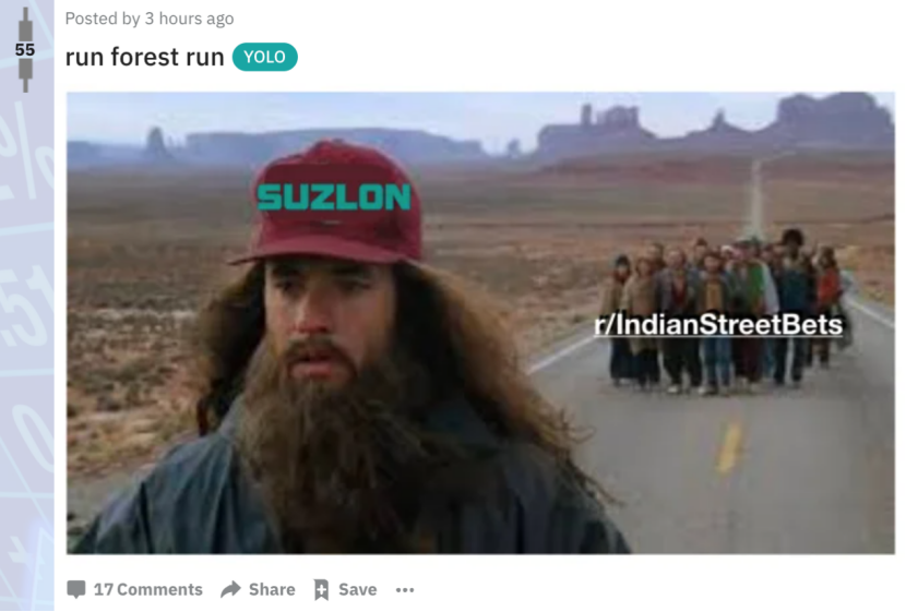 (图说:印度网友制作的表情包,散户们准备大量买入Suzlon的股票。)