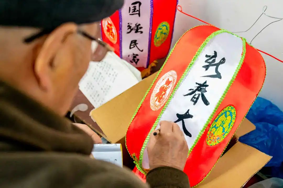朱玲宝告诉记者,罗店商贸繁荣,素有“金罗店”美誉,“比闾殷富”“徽商輳集”的古罗店有“三湾九街十八弄”之说。经济的快速发展,促使当地民俗文化活动丰富多彩,庙会、灯会时有举办,吸引众多老百姓聚集观看。每到新春佳节,商户为了吸引顾客,都会在店铺门口悬挂艳丽、喜庆的彩灯,既为古镇增添年味,也为商铺带来滚滚客流。新春的彩灯,外观色彩是极为讲究的,色彩明亮,大红大绿搭配金黄绚丽的流苏装饰方能烘托年味。彩灯上的图案亦丰富多彩,以手绘的形式展现出一幅幅喜庆、生动的画面,题材可为民间传说、经典故事,也融入制灯人的愿景与想象。而每一盏彩灯上还要写上蕴含着人们对新年期盼的祝福语,以最直接的方式将美好喜悦传递给周围的人。