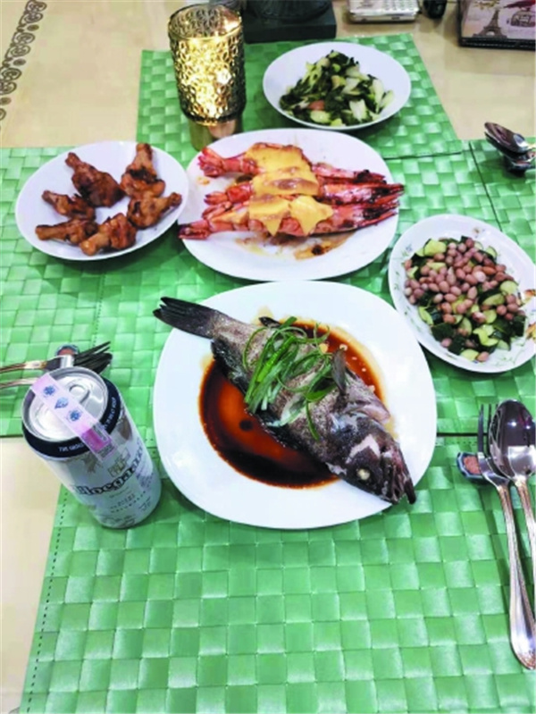 “不过这样也好,可以陪陪太太和儿子。”平时忙碌的他,亲自下厨准备了年夜饭。清蒸石斑鱼,芝士焗大虾,香菇油菜,烤鸡腿,瓜丁花生米……尽管菜式不多,但坐下来在一起好好吃顿团圆饭,才是除夕的真正意义所在。