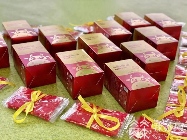 学校校长侯俊东说,小小口罩是一份礼物,蕴含着一份祝福。“开学第一天,学校给孩子们准备了一个福袋,里面是五只红色的口罩,希望新的一年,孩子们携手快乐,健康同行,取得更大的进步。”