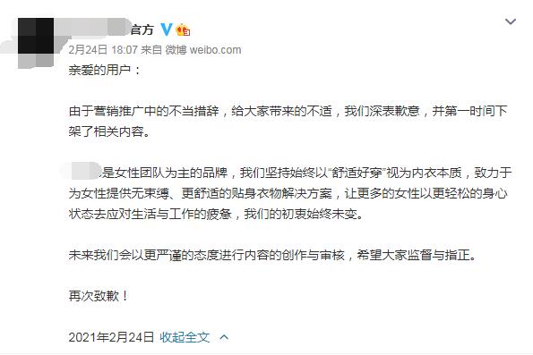 全棉时代、茶颜悦色之后,又有内衣品牌涉嫌侮辱女性