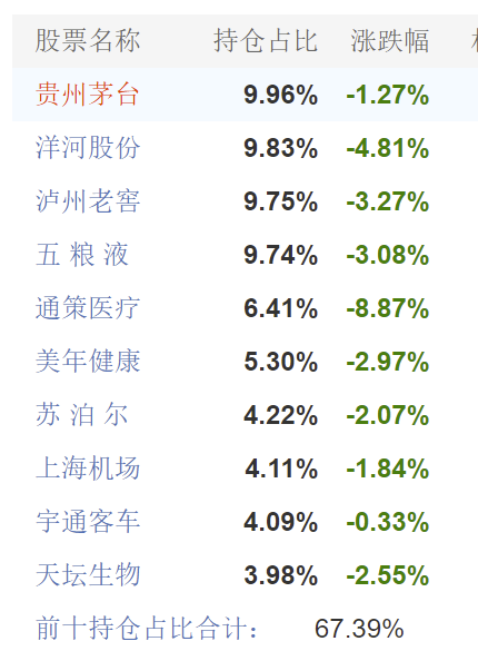 (2月26日易方达蓝筹精选前十持仓股涨跌幅)