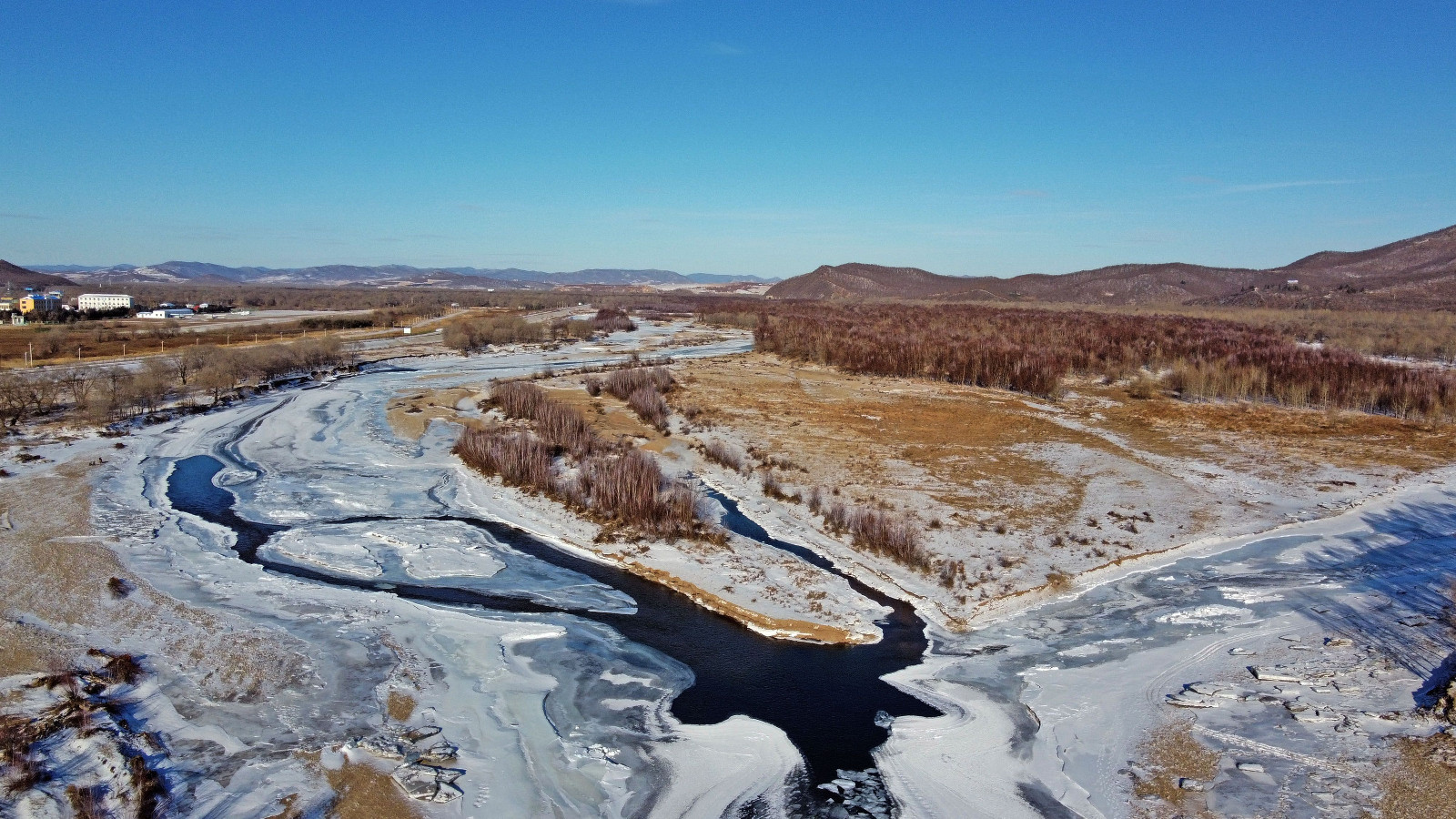冬日的夕阳下,特色建筑、森林景观、古桥古树等,组成了一幅精美绝伦的油画。人民日报客户端内蒙古频道 翟钦奇 摄影:韩冷