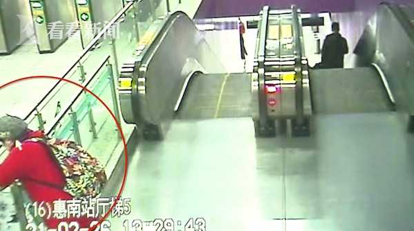 从当时的车站公共视频可以看到,当时一名身穿红色上衣的乘客在电梯口站着,随后走到隔离护栏边上将身体靠在上面,明显在大口喘气,过了一会儿车站的工作人员赶到现场,询问情况,并将乘客扶到一边坐下,并联系家属。