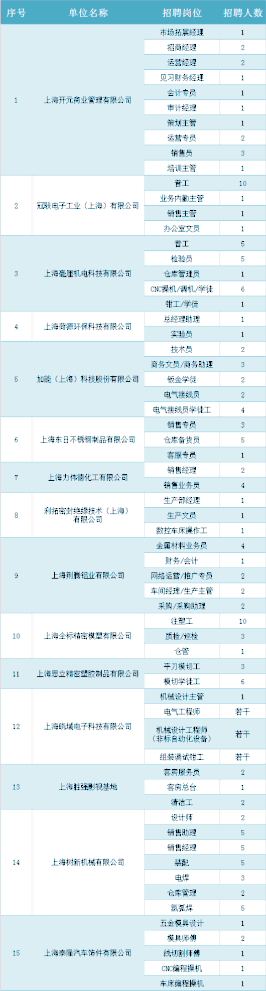 永丰街道专场(第一期)招聘企业15家,招聘岗位63个,招聘人数150余人,