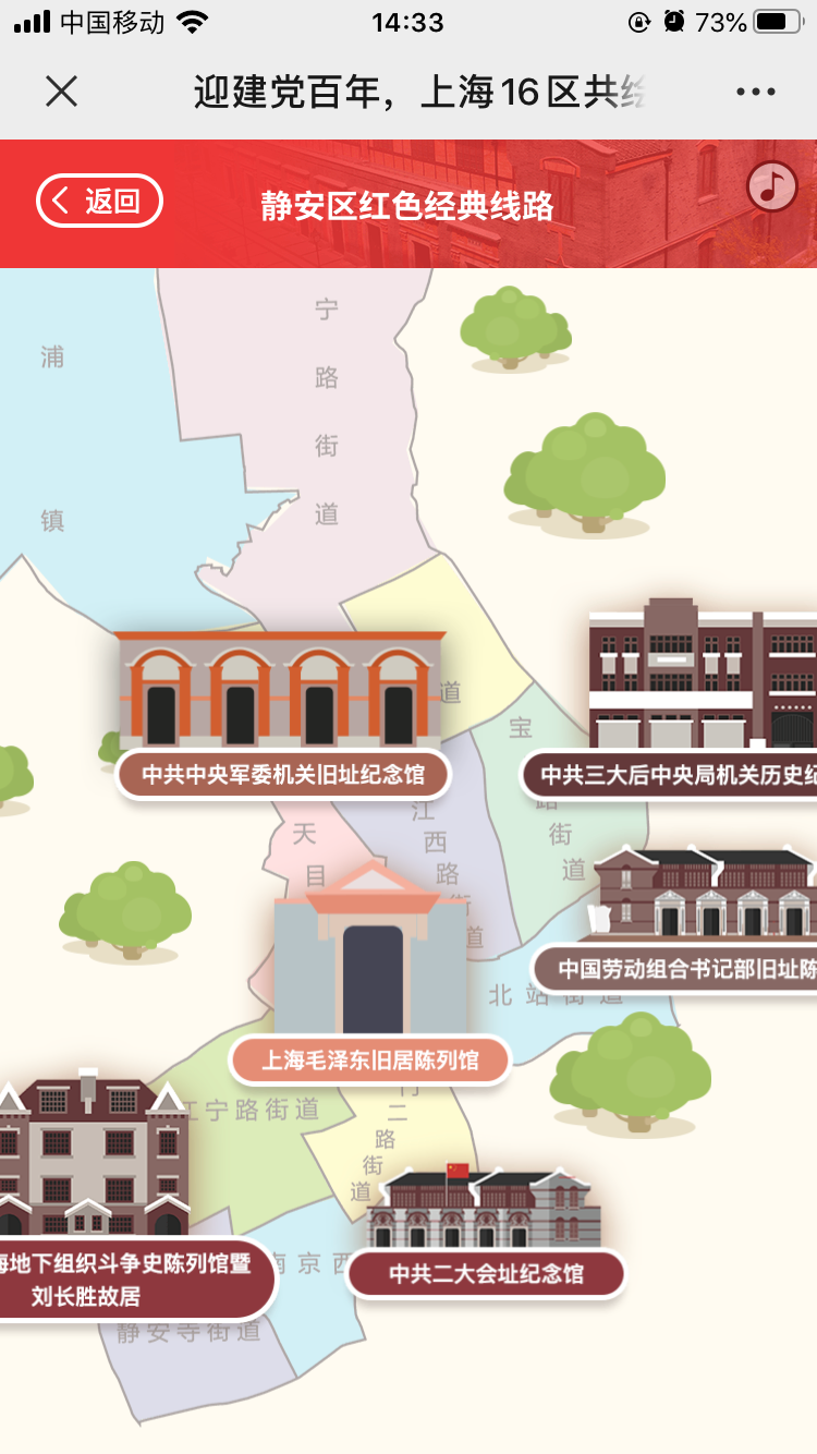 为迎接中国共产党建党100周年“学习强国”上海学习平台联合上海16区区委宣传部精心绘制红色学习地图作为中国共产党早期在上海活动的核心区域之一静安拥有大量的红色文化资源在此次红色学习地图上为大家推荐了一条学“四史”红色经典特色线路。