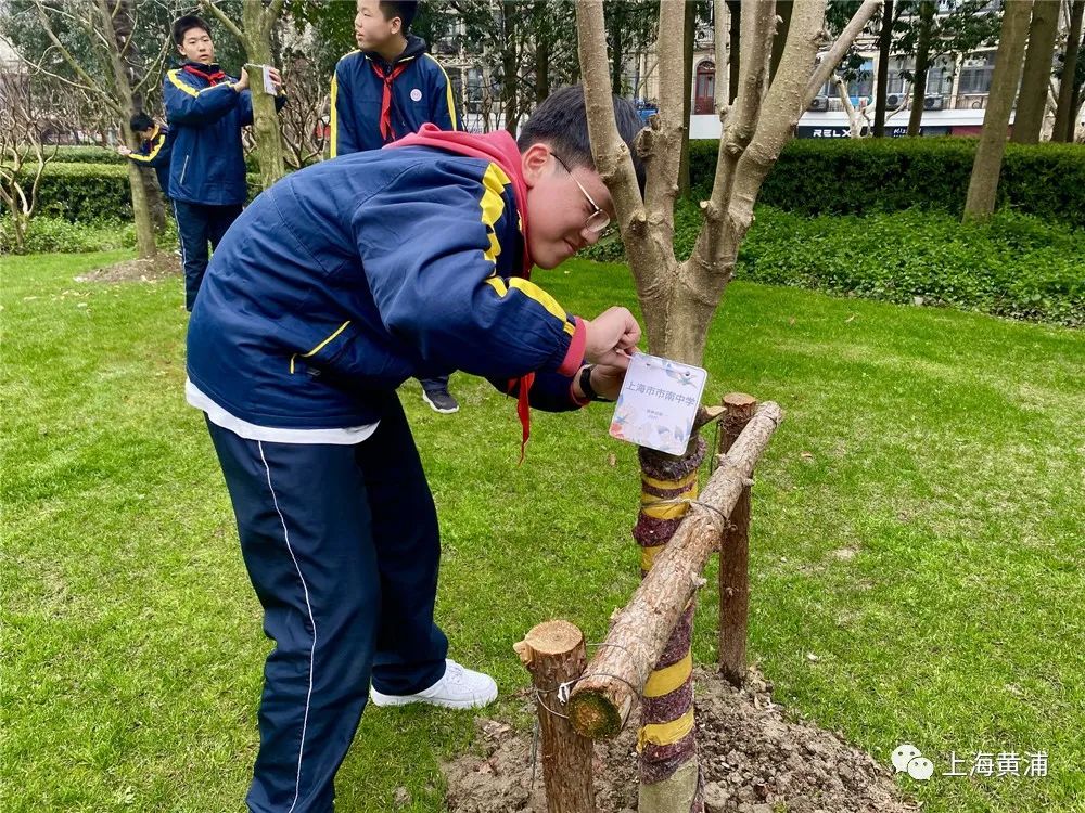 在延中绿地博爱园,市南中学师生举行了“我与小树共成长”树木认养挂牌仪式。从2010年3月至今,市南中学开展“我与小树共成长”树木认养活动已有10年多,班集体累计认养树木320株,师生个人累计认养树木538株,参与树木认养活动近8千人次。