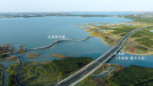青浦与吴江人缘相亲,亲友间往来密切,但由于两地湖荡密布、沟渠纵横,丰富的水系形成了不少断头路。之前,被元荡湖相隔的青浦金泽、吴江黎里咫尺为邻,但以往,人们需开车绕十余公里路才能到达彼岸。“以前,这里是‘断头路’,两岸群众隔湖相望。现在有桥把两地连起来,以前我到吴江要40多分钟车程,现在只用5分钟,方便多啦。”说起元荡桥,金泽镇杨湾村党总支副书记朱荣一脸骄傲。他告诉记者,元荡桥建成后,老百姓打心眼里觉得高兴,家里来客都会带到桥上参观。“在大家心里,这不仅仅是一座交通桥,更是我们金泽的一张名片。”