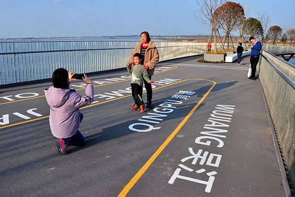 “欢迎来到上海”“欢迎来到江苏”……春暖花开,在长三角生态绿色一体化发展示范区,元荡湖上的慢行桥成了新晋“网红打卡点”。地处上海青浦与江苏吴江分界,不少来自上海市区的游客慕名而来,向前跨一步就忍不住欢呼,“哇,我一步就到了江苏!”