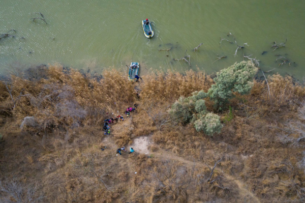 中美洲移民乘船过河进入美国。来源:路透