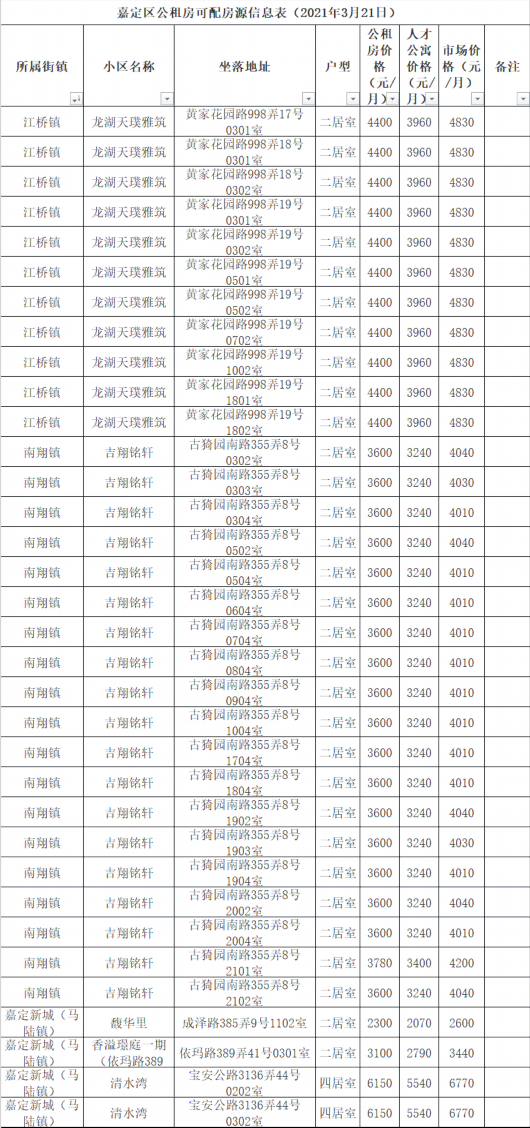 @嘉定的小伙伴,嘉定区公租房公司推出新一批公租房可配房源。分布在嘉定新城(马陆镇)、南翔镇、江桥镇、安亭镇等多个区域,价格最低1260元/月,快和小嘉一起来看看吧~