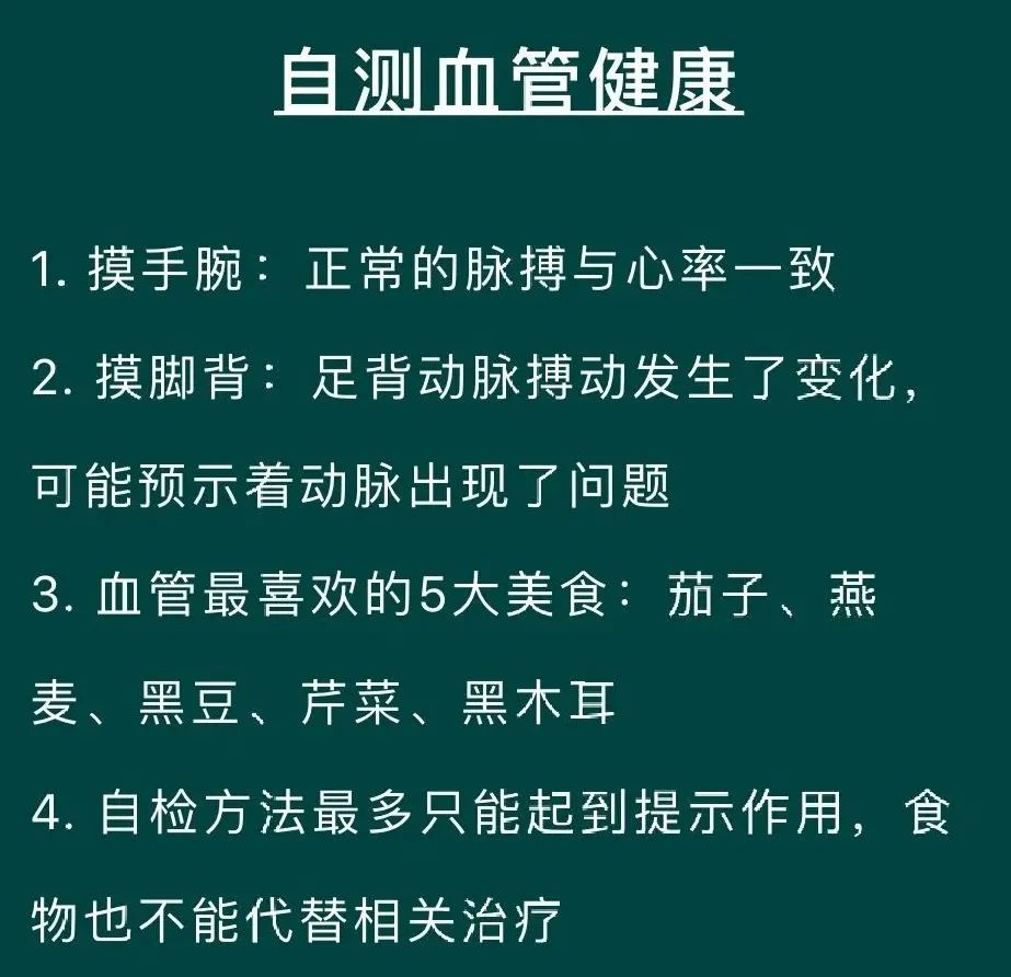 触摸身上这2个地方,一定程度上能帮助我们监测血管状况,防患于未然。不过,这些自检方法最多只能起到提示作用,确诊疾病还需要在医院进行体检以及更多的检查。