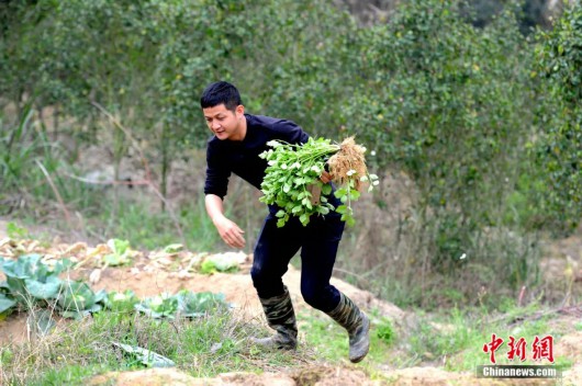 柯嘉华和周晰夫妻俩在田间采摘蔬菜。中新社记者 张金川 摄