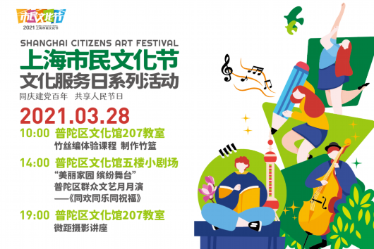 2021年上海市民文化节3·28“文化服务日”即将火热上演,普陀区文化馆开展了一系列文化服务活动,拉开了本年度群众文化活动的序幕。