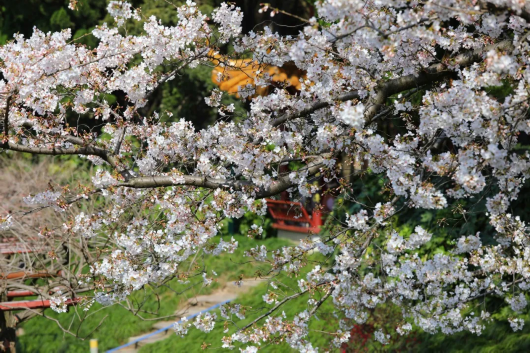菊园樱花大道上种了128株染井吉野,此花有一边开放一边凋谢的特性,所以无论晴雨,市民们都可以欣赏到“樱花如霰晓莺啼”的美景。