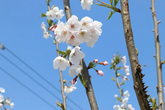 在嘉定工业区旺泾村沈家巷,总长1.4公里的道路两侧种植了450余棵樱花树,其中20%是早樱,已陆续开放,剩下的是晚樱,花期一般从四月中下旬持续到五月上旬。