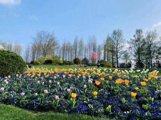 辰山植物园的春天十分绚丽,除了最吸引人的染井吉野樱,许多游客翘首以盼的郁金香日前也悄然登场。