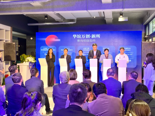 项目已于2020年7月全面开工建设,计划2021年四季度开园。当天,上海电气-西门子智慧能源赋能中心项目、上海交大科技园加速器项目、朴牛科技合作项目、天微生物合作项目、橙狮悦动合作项目与华谊万创·新所签署了意向入驻协议。