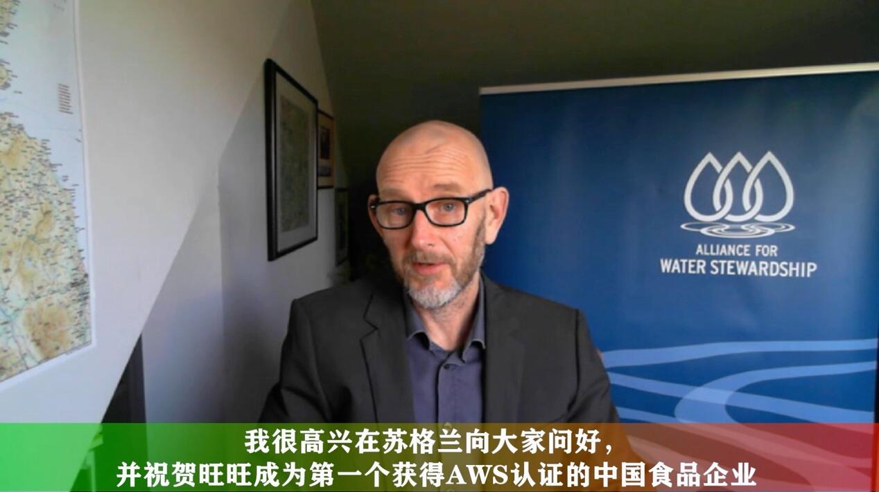 国际水管理联盟首席执行官阿德里安·西姆(Adrian Sym)通过视频表示,旺旺集团将“可持续水管理”理念引入集团战略和基地实践,实现了其引领行业变革的决心。