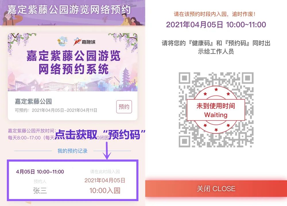 4月5日至4月30日,嘉定紫藤公园实行实名制预约入园!